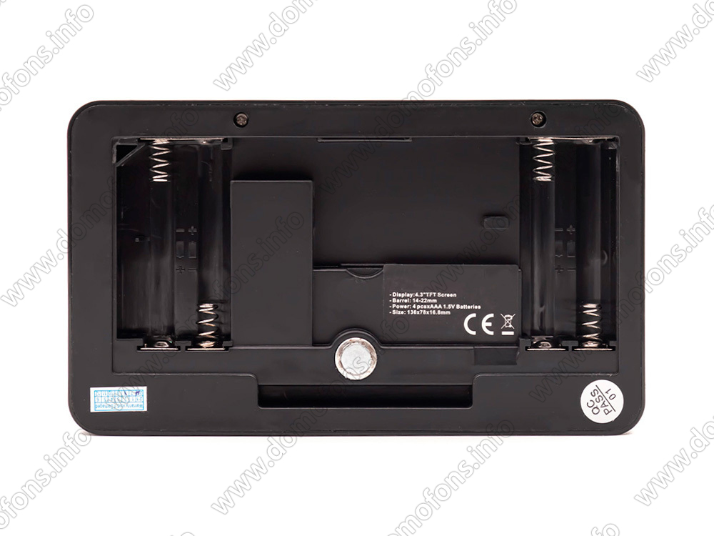угол обзора 160 град, толщина двери: 40 - 110 мм, аккумуляторы 4хААА